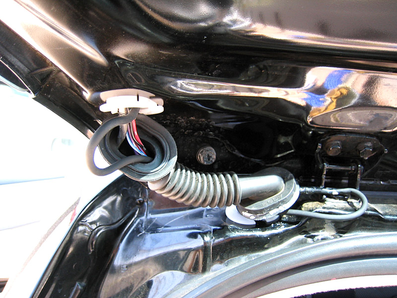 一番難しかったのはハッチに付いたカメラからの配線を車内に引き込むところです。そのままだと配線の先に付いたコネクタが大きすぎて純正のゴムチューブの中を通せないので、一度コネクタから端子をはずしました。