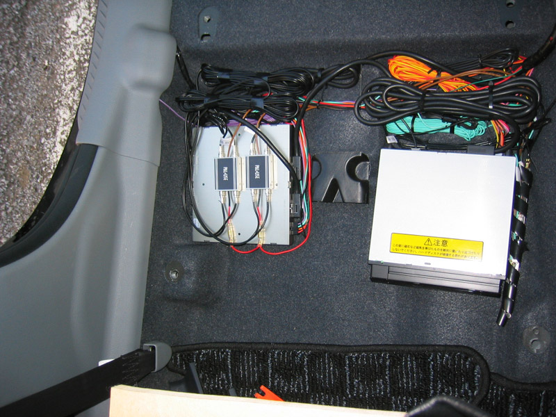 一通りアンテナの貼り付けが終わったら、今度はブースター。ACCとアースを取る必要があるのですがどちらも本体で引っ張ってあるのでちゃっちゃと分岐。アンテナ→ブースター→チューナーを順につなぎ、試しにテレビをつけると、見事きれいに映りました!ロッドに比べるとちょっとノイズが多いですが、実用には全く問題の無いレベルです。苦労した甲斐があって見た目もずいぶんすっきりになりました。