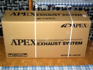初めて新品でマフラーを購入しましたが、箱でっかいですね。デミオ用は2ピースなのでこれでも小さいほうなのかな。まだA'PEXiのロゴの箱に入ってきました。
